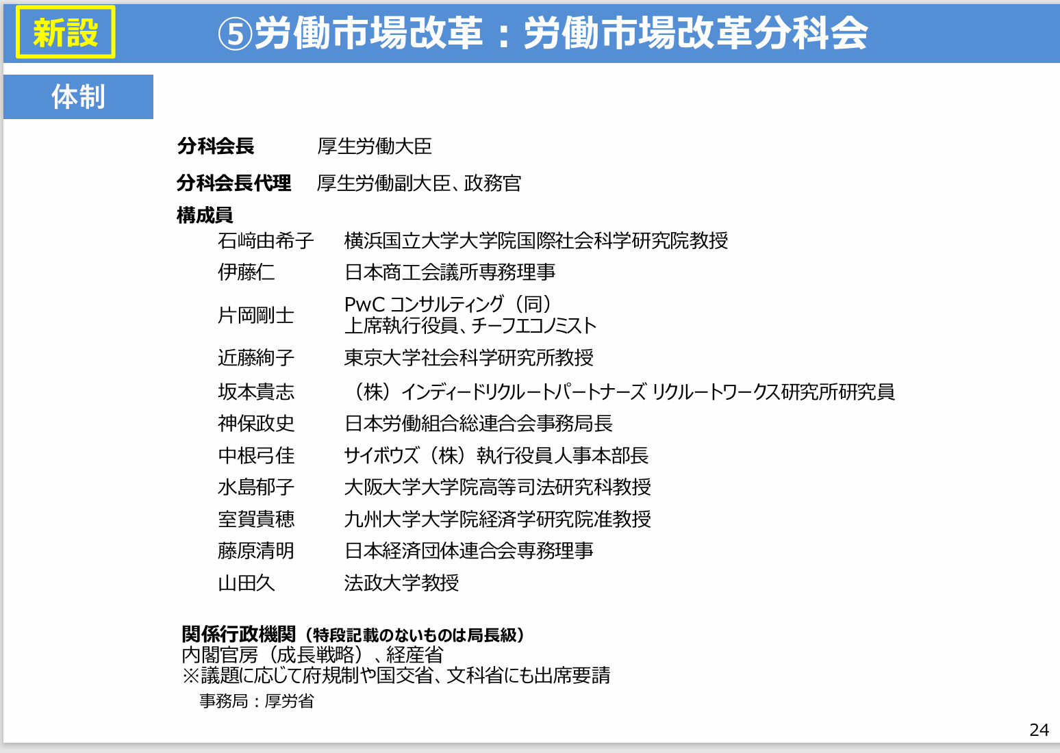 成長戦略本部に「労働市場改革分科会」新設